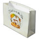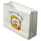 En stor presentväska med en typografisk design som säger att Fall är i luft. Illustrerad med en söt ekorre bakom några orange vattenfärgspumpor. En dekorerad bladkrans omger dem med en ek löv, en akorn, höstblommor och andra orangar och löv.