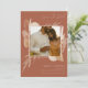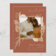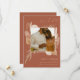 Meddela din speciella dag i stil med det här höstkortet Terracotta Photo Bröllop spara datum. Perfekt för par att planera ett fallbröllop, det här kortet har en varm terracotta-bakgrund och en fantastisk fallande blommigt gräns som ramar på ditt favoritfoto på förlovningen på ett vackert sätt. Med enkla, moderna typsnitt och ärliga toner, sparar detta datum elegans med höstens rustiska charm. Det anger perfekten för ert kommande bröllop och bjuder in gästerna att markera sina kalendrar på ett minnesvärt och snyggt sätt.
