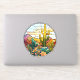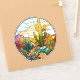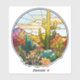 Söt vinylbilsdekaler och AI genererade ökenlandskap i nedfläckad glas med kakti och berg.