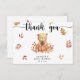 "Tack". Fira med den här nallen, den där babyduschen party! Söt nalle med vattendjup med höstpumpa i tassar på höstlövning.