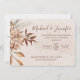 This fall wedding invitation features a soft, neutral background with delicate watercolor florals in warm autumn tones of blush, beige, and rich brown. The botanical design feels elegant and timeless, with gently layered leaves and florals that create a romantic, seasonal atmosphere without overwhelming the text space. Its airy layout and earthy palette make it perfect for a bride seeking a refined, cozy, and nature-inspired invitation that beautifully captures the warmth and charm of an autumn celebration.