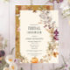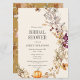 Fira din händelse med eleganten Fall Pumpkin Boho Blommigt Inbjudningskort för möhippa. Med en orange pumpa, vackra jordtonsblommor, fjärilar och bakgrund i senapsgult, , lila och grönt. All text kan ändras.