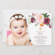 Fall blommigt rosa, burgundär baptism, foto inbjudningar