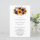 Blommigt solrosblomma bröllopsprogram med en rustik bukett med vattenfärgade solblommor, röd ros, lila blommor och grönt. Det här eleganten är underbart för en boho temed fall bröllop. Dessa bröllopsprogram i billigten trycks på lakan av papper för ett budgetvänligt alternativ.