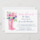 Modern elegant rosa navy blue blommigt water color bouquet och guld glitter konetti på vatten, regnbåge med rosa, perfekt long avstånd babydusch per post med ett elegant-skript och ett litet redigerbart kuvert.