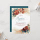 Fall Blommigt Teal Blue och Terracotta Fall Baptis Inbjudningar