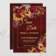 Fall bröllopsburgundy ro gult solblommor spara datumet