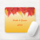 Fall bröllopsmusmattan med brud och groom namn och bröllop år. Designad med rödhårig löv.