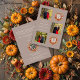 Brown Gold Exquisite Modern Fall Wreath 3 Photos Wedding Engagement Collage Save the Dates Cards with Envelope.