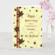 Lycklig bröllop-årskort för kusin och make med höst löv mönster och hjärtligt versum.