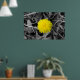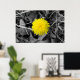 Denna poster har en skarp gult mot en svart och vit bakgrund av höst löv och gräs.