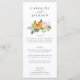 Den här hösten-menyn i bröllop har en vattenfärgad blommigt som faller inom bukett och söt-typografi. Anpassa fallbröllopsmenyn med parets namn högst upp och lägg sedan till informationen om mottagningsmiddagen under blommigtens bukett. Baksidan av menyn är dekorerad med ett rustiskt blommönster som omfattar ro, morsa och butterkuggar på söt höst färger, t.ex. burgundi, plommon, rosa och gyllene gult.