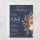 Den här designen visar elegant blommigt inslag i höstskuggor av guld, burgundi, gröntar och beige på marint blått teckensnitt för ett födelsedagsfest inbjudan. Utforska samlingen på den här sidan för att hitta koordinerande element i den här designen.