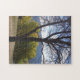 Träd har borttappaden till största delen av sina löv, medan de som ligger bakom just har börjat byta färg. Bakom träd kan man se en del av fotgängarna söder om Pikes topp.