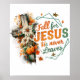 Fredlig, färglös design med en fall-/höstscen med pumpor, trä kor och blommor. Den färgstarka inspirationstexten lyder: "Fall for Jesus, han lämnar aldrig". Den här utformningen är tillgänglig för en mängd olika produkter.