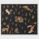 En vacker illustration av skogsdjur omgiven av brunt Höst löv. Skogsdjur med sädessäsong, inklusive räv, varg, ekorre, hjort och tvättbjörn i natteskogen. Perfekt födelsedagspresent, daghemsdekoration, barnrumskonst, hemdekaler, Julklapp eller gåva till något annat särskilt tillfälle.