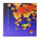 Fallscen: vild vindruvor med orange, rött, guld löv och lila druvor. En underbar sitta på gren. Anpassat namn, trendigets handskrivna teckensnitt. Blå, ljusa gult, svart. Fet höst färg, vacker och levande. Bild baserad på en japansk bra av vintage. Underbar för Thanksgiving men även när som helst.