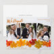 Detta vackra bröllopsannons Tacksägelse fotokort har en elegant 3 fotografi collage under de orange orden Vi Förlovade Oss. Detta vackra höstblad fotografi med trendigt vitt trä bakom bladen är ett chic semestkort att dekorera med dina nygifta fotografier. Ge tack för ditt nya äktenskap med dessa söta par bilder.