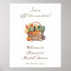 Rustic Fall Hon är utanför Möhippan Välkommen poster med vattenfärgillustration av en fallande vegetabilisk basket, inklusive pumpor. Teckensnittet är i god grönt och i brunt handskriftsteckensnitt stil. Tillgänglig som digital nedladdning.