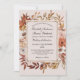 Ett vackert fall och höstens bröllopsinbjudan till färg. Inbjudan är inramad med en färgstark bukett av blommor i rostbildning, mjuka nyp, vita och . Alla fält kan redigeras. Den här designen har en bakgrund för rosa. Se vår samling för matchande produkter.https://www.zazzle.com/collections/autumn_terracotta_rust_boho_floral_wedding_suite-119048813946979010