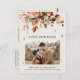 Elegant Rustic land faller bröllop, spara datumet på vykortet med brunt, rött, orange, grönt eucalyptus löv. Kontakta mig om du behöver hjälp med anpassning eller om du behöver någon annan produkt med den här designen.