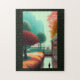Fall i en fantasi-stad, guldröd och grönt löv pussel