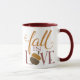 Fall i kärlek med allas favoritsäsong och sätt på din pumpkryddlatte från säsong mugg. Utformningen av "Fall in Kärlek" i marsala-perfektens högsäten och bränd orange, med en akorn i ställe i "O".