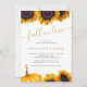 Modern gult guld boho chic solblommor och pumpkin Fall i Kärlek inbjudningskort för möhippan med chic gyllene handskriftsskript. ++++ Lämpligt för hösthöstfall vid trädgårdsodling i land party.