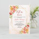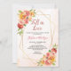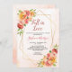 I dessa "Fall In Kärlek"-inbjudningskort för möhippa finns en vattenfärgskonstruktion för blommigt med koraller, persikor och rosor och ett faux guld geometric ram. Bakgrunden är vattenfärgsblommor. Anpassa inbjudan till din egen text. Dessa inbjudningar är en del av en samling som innehåller en rad matchande bröllop-skrivbord och andra bröllop-artiklar. Visa samlingssidan eller besök vår butik för att se fullt.