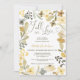 Fall i kärlek boho blommigt höstchic möhippa med söt grönt, gult, senap och khaki-blommor ram med blad och eukalyptus. En boho inspirerade till höstens möhippa med ett modernt hjärtmanustypografi och ett söt blommönster på baksidan.
