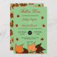 Den här eleganten blir bröllopsinbjudan en perfekt för ett modernt höstbröllop. De enkla designfunktionerna som faller i löv med elegant svart och röd typografi på en grönt bakgrund
