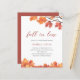 Anpassadets pappra inbjudningar i modern möhippa, med gren i träd i fall och höst löv i ton av orange, rost, gult och på ren vit bakgrund. Detta är en prisvärd papper inbjudan. Du är välkommen att besöka vår butik med Peony-design för att köpa den här inbjudan på kort eller digitalt.