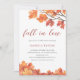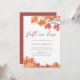 Anpassadets moderna inbjudningskort för möhippa, med gren i träd i fall och höst löv i ton av orange, rost, gult och på ren vit bakgrund.