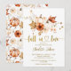 Rustic och elegant inbjudningskort för möhippan med handmålade vattenfärgade vita pumpor, höst löv och blommor med gyllene "fall i kärlek"-formulering och faller blommönstret i ryggen. Kontakta chattan om du behöver anpassa eller matcha objekt.