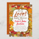 Du kommer att vara i kärlek med den här höstteman för barnskussinbjudan! Har varm orange, gult och röda nyanser av löv och löv och elegant ram.