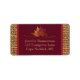Dessa överkomliga adressetiketter i bröllop har en simulerad överlappningsyta på den lämnat sidan och på högerna med ett kluster av höst löv i rött, orange, grönt och guld i mitten av det burgiga vin textområdet. Det finns en tvillingbåge under löven och namn och adress är tryckta i tan. Om du behöver ytterligare matchande artiklar skickar du en e-postbegäran till niteowlstudio@gmail.com eller användor Zazzle-chattan för att få kontakt.