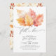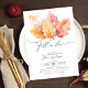 Inbjudningskort för möhippan har vackra vattenfärger höst löv, skapar perfekten för en falltematisk dusch. Inbjudan är enkel och elegant, med vit bakgrund och svart text. Gren med höst löv och lyktor tillför en liten aning stollig och roligt, och den övergripande utformningen är perfekten för att fira den blivande bruden i bröllop.