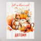 Fira årstidens skönhet med denna charmerande "Fall in Kärlek with Autumn" poster. Med en lekfull ekorre som är kapslad bland pumpor, blommor och höst löv, ger den här poster värmen och färskheten att falla in i alla utrymmen. Perfekt för att lägga till en säsong-beröring till din hemskår, den här designen fångar kärnan av höstens inbjudande atmosfär. Perfekt för Thanksgiving eller som en del av dina falltematiska dekorationer.