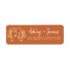 bröllop returadressmonogramminska i kärlekguldbladguld lövchicskriptanrophandskriven elegantsnyggtlöv av höstvattenfärgen orange