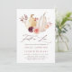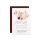 Den här bröllopsinbjudan har vattenfärgsvit och gult pumpor som är adorberade med burgunga, maron och rosa blommor över höst löv. Om du vill ha en mer avancerad anpassning av den här designen klickar du på länken Anpassa ytterligare. Matchande objekt är också tillgängliga.