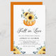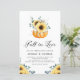 Fall i kärlek! Möhippan av falltemat har vattenfärgspumpa med gult solblommor, bomull och eukalyptus löv. Anpassa genom att lägga till information om namn, datum, tid, plats och andra händelser. Denna inbjudan till möhippa för rustiska solrosor är perfekt för fall eller bröllop under hösten.