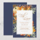 En elegant, rustik bröllopsinbjudan med en fantastisk vattenfärgsblad och pumpkindesign. Den jordnära förbrända orangen färger kompletterar den mörk blått bakgrunden färg på detta kort. Uttrycket "Fall in Kärlek" förekommer i ett vackert skript med snyggt. Den här inbjudan är redot för dig att anpassa dina gäster till din speciella dag med dina egna uppgifter till inbjudan.