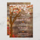 Fall i Kärlek Rustic Inbjudningskort för möhippan. Fall ek träd med färgstarka bröllopsinbjudningar i höst löv som är vackra och som visar ett levande hjärta med dig och ditt kärlek initialer i träd. Ert tema för hösten bröllop kompletteras av höst löv i färg av gyllene gulter, och orangar. Denna kraftiga nedgång i inbjudan till Rustic Möhippa i Kärlek är perfekt för fall och hösttemat bröllop och särskilt för oktober eller september månader när landskapet matchar inbjudan.