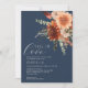 Ange tonen för din boho-inspirerade fallande möhippa med den här söt inbjudan som innehåller en blommigt med vattenfärg i rost- och terracotta-nyanser. Anpassa med all viktig information som bridens namn, duschdatum, plats, OSA och registerinformation. Den motsatta sidan samordnas mörk blått