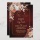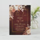 Nedfall i kärlek torkade ro höstlöv, burgundär bakgrund guld blommigt inbjudningskort för möhippan inbjudningsmall för omedelbar nedladdning