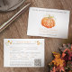Fall i kärlek, pumpa, falla vinrankor lämnar vattenfärgsmålning bröllop QR-kodsvarskort. Anpassa det här svaret till ett bröllopskort med dina egna måltider i bröllop och QR-kod för webbplatsorientering till onlinens svarsalternativ och val av måltider. Har en vattenfärgsdel av den vita autumnalpumpen, hjärtvinerna i den traditionella ljusa orangen och grönten med mörk brun och orange på vitt. Andra tillgängliga färg och matchande bröllop-objekt. © Ursprunglig vattenfärgsmålning och design av Sarah Trett för www.mylittleeden.com