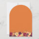 I inbjudan till elegant bröllop finns blommor och pumpor i färg och ram i guld. Baksidan har höstbukett med guld-accent på orangens bakgrund. Enkel att anpassa genom att klicka på knappen "Anpassa". Perfekt för att dela din speciella dag med familj och vänner.