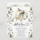 En elegant faller inbjudningskort för möhippan-perfekten för autoint firande. Med en vit bakgrund i chicen, en vit vattenfärgspumpa med faux guld glitter, vita blommigtar, eukalyptus och andra botaniska grejer. Det romantiska ljuva talesättet "Fall in Kärlek" i kalligrafiskript och en möhippa som är enkel att anpassa.