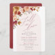 Fall i kärlek i höst med den elegant vattenfärgen blommigt inbjudningskort för möhippa. Perfekt för fallande möhippa. Utformningen har en vacker burgundisk, och rost vattenfärgsblomma gräns, elegant "fall i kärlek"-skript, kalligrafi och information om anpassningsbarnas möhippa på en modern bågbakgrund.