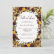 Vackra rostiga brända orangar och mörk burgundy marsala hösten faller blommor med torkat löv och löv skapar en charmerande elegant, rustiskt fall i kärlek inbjudningskort för möhippan med ett handskrivet kalligrafiskt skript för chic. +++++++++ Enkel att anpassa med dina uppgifter! Lämplig för hösthösthösthösthösten vid jordbruksstallet i land eller på bakgården i brudens sida.